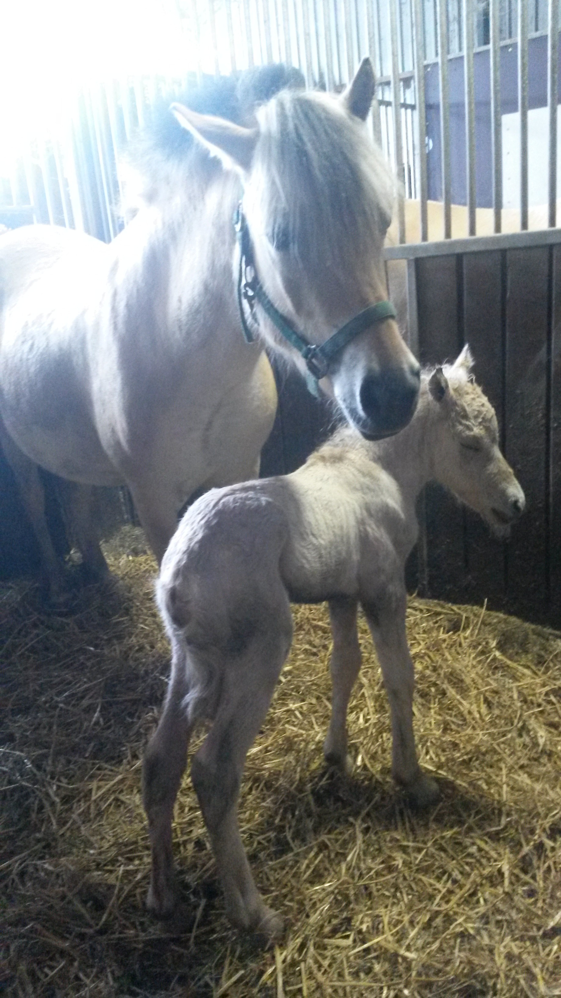 Vanochtend om 9.30 uur is Gaby bevallen van een prachtige zoon! Zijn naam is voluit Karel Gustaaf, we noemen hem Karel. Moeder en zoon maken het goed, na een half uur zette hij de benen eronder en stond hij heel parmantig naast zijn moeder. Met deze geboorte is er een nieuwe generatie geboren op Stal De Spaane Kampen, Karel stamt af van de eerste fjord die aan de Middelbuurtseweg kwam wonen, hij is de 8ste in de lijn… Heel bijzonder allemaal!