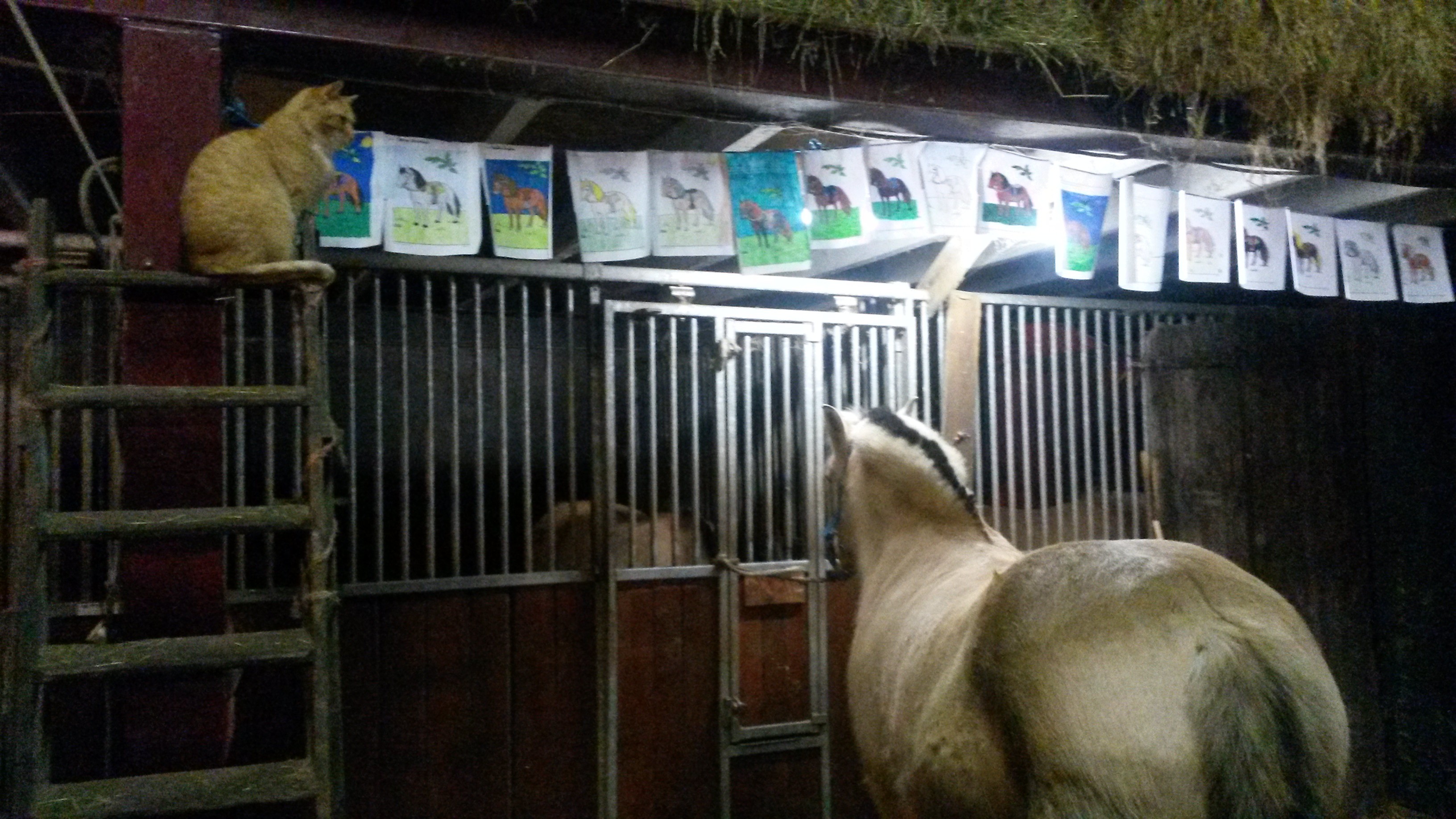 Het wordt steeds gezelliger in de stal met alle mooie kleurplaten! De jongste deelneemsters van de januari cursus mochten allemaal een mooie kleurplaat inleveren en er zijn ook hele mooie prijzen… Deze rode kat wil ook graag in de jury 🙂
